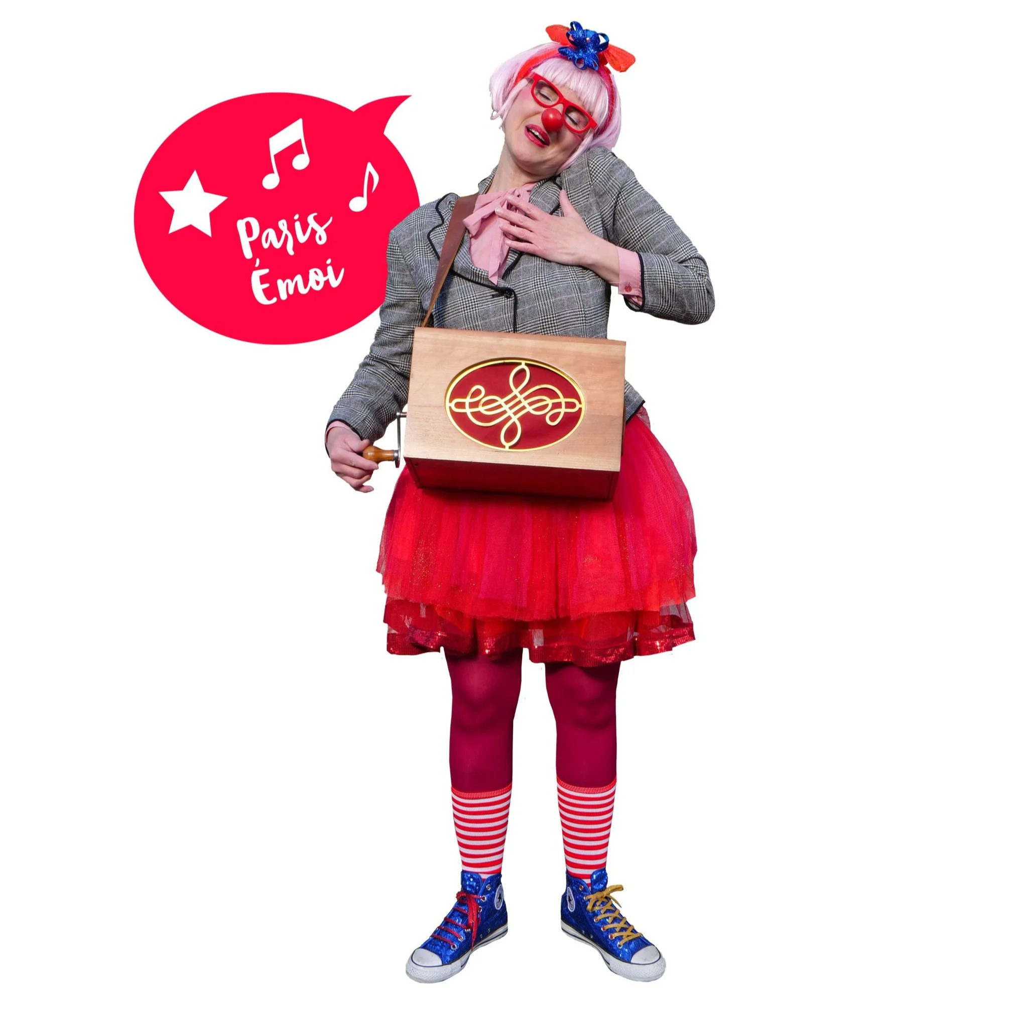 Mme Elsé est aussi une clowne rêveuse, méticuleuse, chanteuse et danseuse. Elle adore raconter des histoires, jouer de l’ocarina ou chanter des chansons en s’accompagnant avec son petit orgue de barbarie.