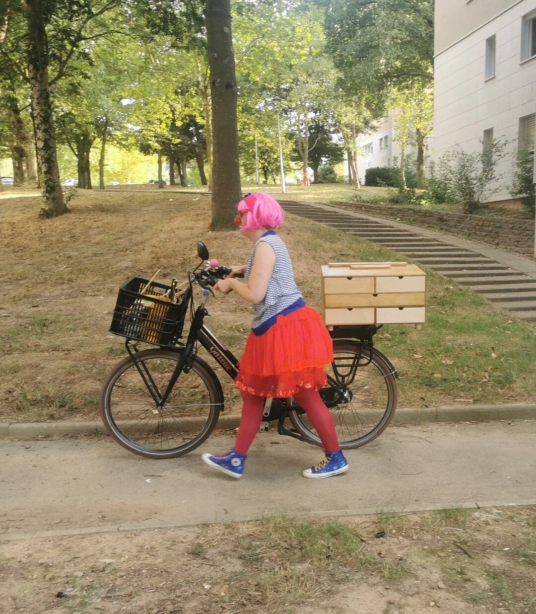 Elle déambule, fait de la médiation et de la prévention, dans un geste artistique, avec panache et bonne humeur !