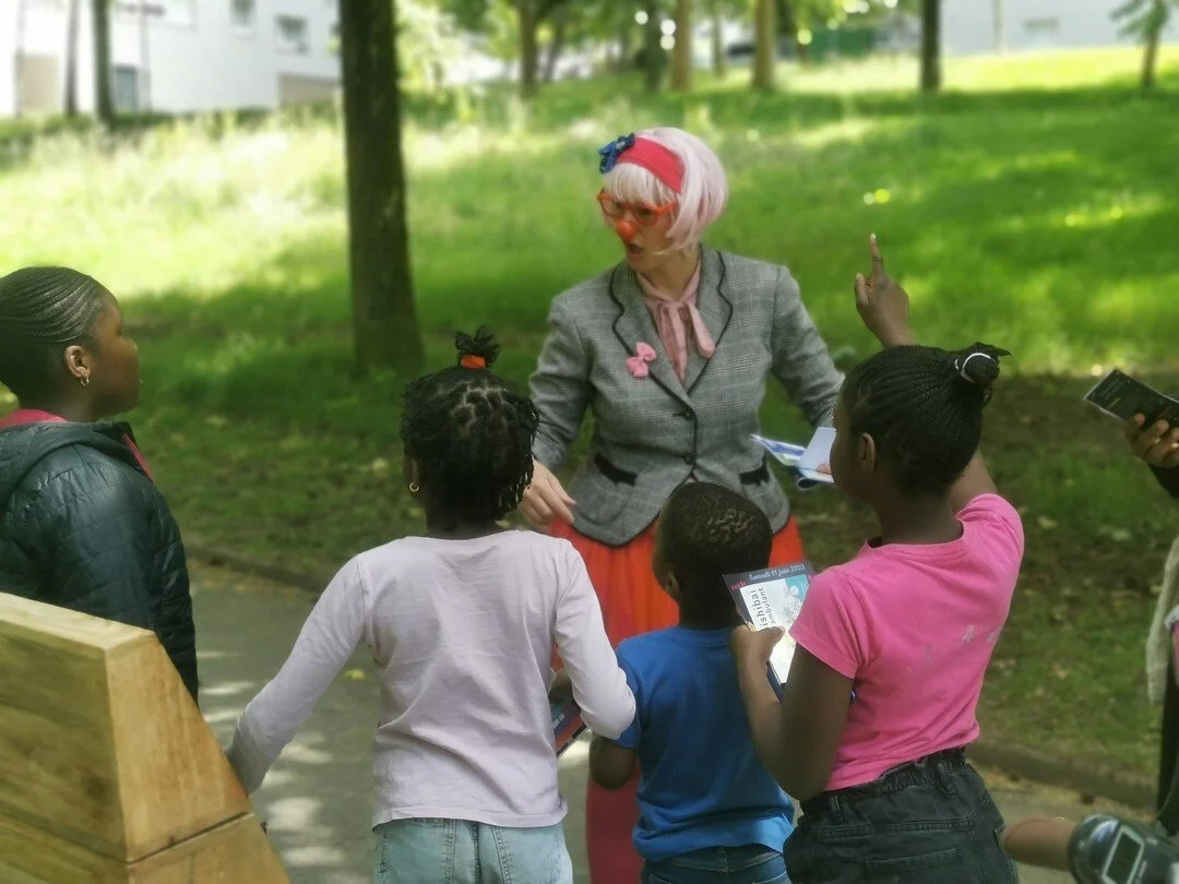 La clown et ses acolytes vont directement à la rencontre des différents publics que ce soit sur l’espace public, les musées, les établissements de soins ou encore à domicile.